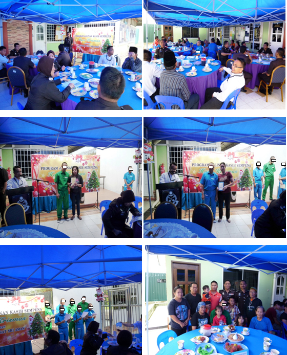 Pada 29 Disember 2015 (Selasa), Unit Pemulihan Dan Rawatan Penjara Pusat Sri Aman telah menganjurkan Program Jalinan Kasih Sempena Krismas peringkat penghuni Penjara yang diadakan di Perkarangan Pejabat melibatkan seramai 06 orang penghuni yang beragama Kristian dan 35 orang ahli keluarga penghuni yang dipilih. Program ini telah di sempurnakan oleh TPP Mohd Nazef Bin Mohd Mazlan yang turut di hadiri Media dan semua pegawai pemulihan. Program seumpama ini diadakan setiap tahun bagi mendekatkan hubungan penghuni dengan keluarga dan kemuncak program ini adalah penyampaian kad ucapan Krismas dan Tahun baru yang dibuat sendiri oleh Penghuni kepada keluarga masing-masing. Penghuni juga diberi peluang untuk menyanyikan Carroling Krismas didepan keluarga masing-masing. Program ini berakhir jam 1045 pagi dengan jayanya.