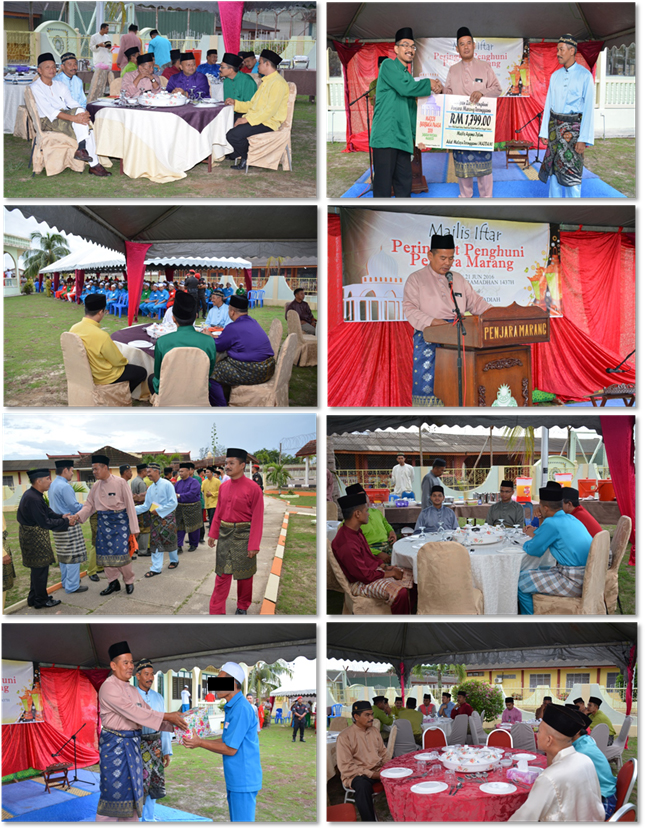 28 Jun 2016 (Selasa) Majlis Iftar Ramadhan peringkat Penjara Marang, Terengganu telah diadakan di Surau Muhamadiah Penjara Marang. Majlis turut diserikan dengan kehadiran dif-dif jemputan antaranya Hakim Mahkamah Syariah Kuala Terengganu , hakim pelawat, wakil-wakil ketua jabatan di negeri Terengganu dan warga penjara Marang serta keluarga. Majlis telah dimulakan dengan takzirah ramadhan dan doa berbuka oleh Ust Khairul Idham bin Ali.