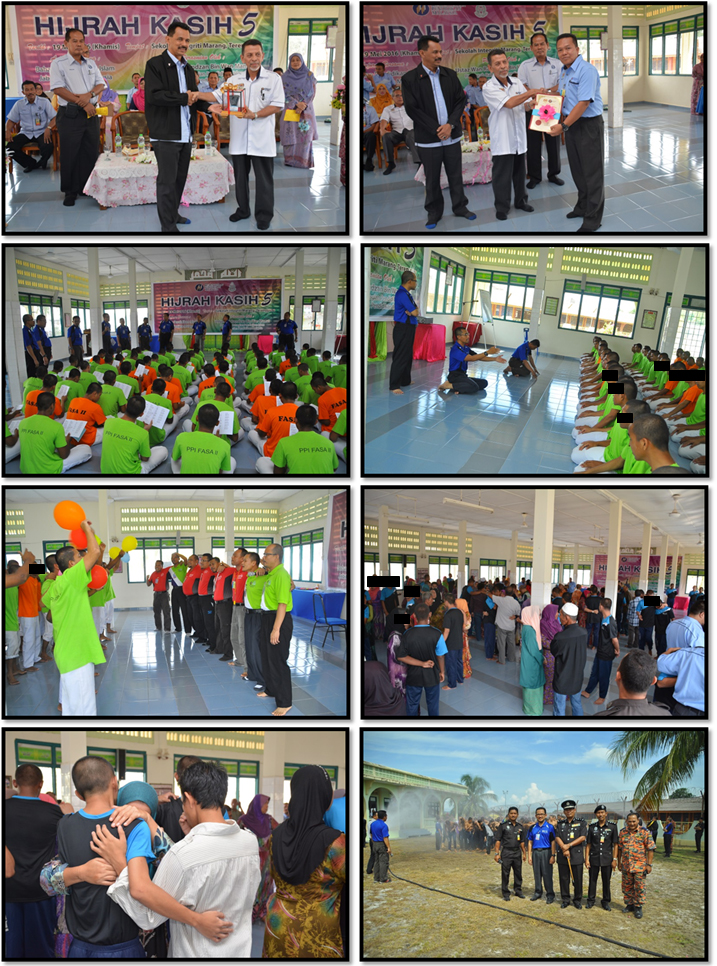 19.05.2016 (Khamis) Penjara Marang Terengganu telah mengadakan Majlis Perasmian Penutupan Program Hijrah Kasih 5 anjuran bersama Bahagian Pendidikan Islam, Kementerian Pendidikan Malaysia dan Jabatan Penjara Malaysia yang disempurnakan oleh YBhg Ustaz Wan Ramzan Bin Wan Mamat, Pengarah Bahagian Pendidikan Islam, Kementerian Pendidikan Malaysia. Majlis juga diserikan lagi dengan kehadiran Ybrs. PKK Mat Rasid Bin Jahlil, Timbalan Pengarah Seksyen Pemulihan Dan Pendidikan Ibu Pejabat Penjara Malaysia, PKK Ahmad Saidi Bin Hamzah, Pengarah Penjara Negeri Terengganu, PKP Mohamad Bin Ismail, Pengarah Penjara Marang, Ketua Sektor Pendidikan Islam Jabatan Pendididkan Negeri Terengganu Ybrs. Tuan Md. Yusof Bin Rahim dan Ybrs. Puan Hajah Kamariah Bt. Isa Timbalan Pengarah Bahagian Pendidikan Islam Kementerian Pendidikan Malaysia serta para jemputan. Program yang bermula pada 17 hingga 19 Mei 2016 melibatkan seramai 80 orang penghuni Sekolah Integriti Penjara Penjara Marang Terengganu. Sepanjang program ini berlangsung penghuni didedahkan tentang tanggungjawab dan kesedaran dalam diri terhadap agama, keluarga, masyarakat dan negara. Program ini juga memberi peluang kepada pelajar sekolah Integeriti untuk berjumpa dengan keluarga yang tersayang.