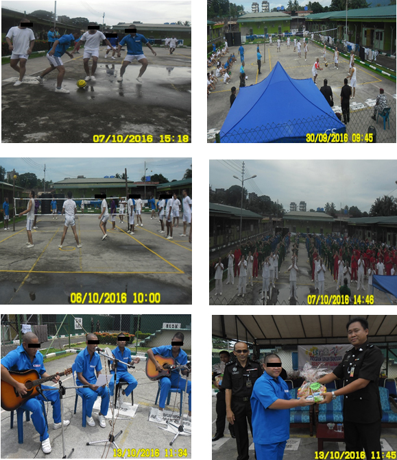 13.10.2016 (Khamis) telah diadakan Majlis Penutupan Perasmian Program Sukan Peringkat Penghuni Penjara Tawau di Dataran Insaf Penjara Tawau yang melibatkan seramai 320 penghuni lelaki dan 30 penghuni wanita. Majlis Penutupan Perasmian Program telah dirasmikan oleh TPP Choimmber Tain. Program Sukan Peringkat Penghuni merupakan aktiviti riadah dan acara tahunan Unit Pemulihan yang memberi ruang dan peluang kepada penghuni bagi mencungkil bakat dalam sukan. Selain daripada aktiviti riadah kepada penghuni, program ini merupakan salah satu pendekatan memupuk semangat setiakawan dan semangat kesukanan di kalangan penghuni di dalam penjara. Antara acara yang dipertandingkan adalah futsal, sepak takraw, bola tampar, acara in-door seperti catur dan karom serta pertandingan sukaneka dan karaoke. Majlis Penutupan Perasmian berlangsung meriah dengan persembahan akustik oleh penghuni dan berakhir dengan majlis penyampaian hadiah oleh TPP Choimmber Tain.
