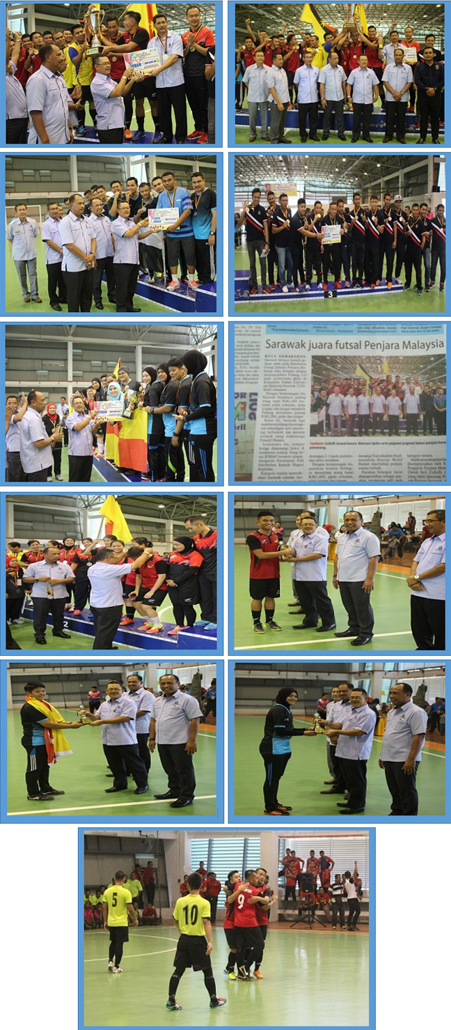 Majlis Perasmian Kejohanan Futsal Jabatan Penjara Malaysia Kali Ke-8 Tahun 2017 telah dirasmikan oleh Yang Dihormati Timbalan Komisioner Ajidin bin Haji Salleh, Pengarah Penjara Negeri Sarawak pada 31 Mac 2017 (Jumaat) jam 8.00 pagi bertempat di Gelanggang Futsal, Kompleks Sukan Unimas. Manakala Majlis Penutupan Rasmi Kejohanan Futsal telah dirasmikan oleh YBhg. Dato? Sri Hj. Zulkifli bin Omar, Komisioner Jeneral Penjara pada 2 April 2017 (Ahad) jam 11.00 pagi bertempat di Gelanggang Futsal Unimas. Majlis Makan Malam telah diadakan di Annuar Steamboat, Kuching.