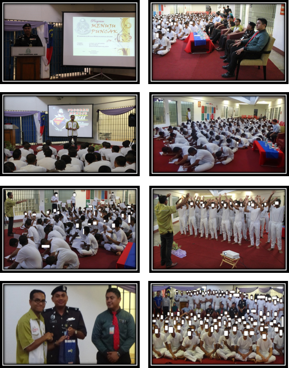 "" Seramai 130 orang penghuni terdiri dari pelbagai kaum telah dipilih untuk menyertai program ini. Program Menuju Puncak merupakan program yang berkonsepkan kesedaran mengenai minat kerjaya individu. Diantara pengisian program adalah ceramah kesedaran minat kerjaya dalam kalangan remaja oleh penceramah jemputan iaitu En. Mohamad Hasbullah Bin Mustafa, yang merupakan Pegawai Psikologi dari Politeknik Merlimau.