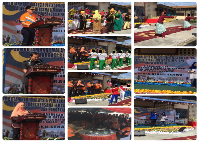 13 September 2017 (Rabu) ? Telah berlangsung Majlis Sambutan Hari Malaysia Peringkat Penjara Sandakan bertempat di Perkarangan Penjara Sandakan. Majlis ini adalah hasil kolaborasi bersama Penjara Sandakan, Lembaga Hakim Pelawat dan Sandakan FM. Antara Objektif penganjuran adalah untuk memberi pemulihan efisien dan dinamik kepada penghuni disamping memperkasa modul pemulihan sedia ada. Majlis ini dirasmikan oleh Yang Berbahagia Datuk Chew Kok Woh, Timbalan Pengerusi Lembaga Hakim Pelawat, Penjara Sandakan. Turut hadir dan menyampaikan ucapan adalah PKP Zulkifli bin Abdul Manah, Pengarah Penjara Sandakan dan Puan Anisah binti Mohd. Yunus, Pengurus Sandakan FM. Hadir sama PP Abd Rauf bin Lang Pasih, Timbalan Pengarah Penjara Sandakan, ahli Lembaga Hakim Pelawat, pegawai-pegawai kanan dan kakitangan Penjara Sandakan. Pengisian majlis adalah Pertandingan Deklamasi Sajak, Nanyian lagu-lagu Patriotik dan penyampaian hadiah sukan penghuni yang telah berlangsung 3 minggu lebih awal. Majlis tersebut turut mendapat liputan RTM Sabah dan ditayangkan dalam berita pagi segmen berita langsung dari Sabah.