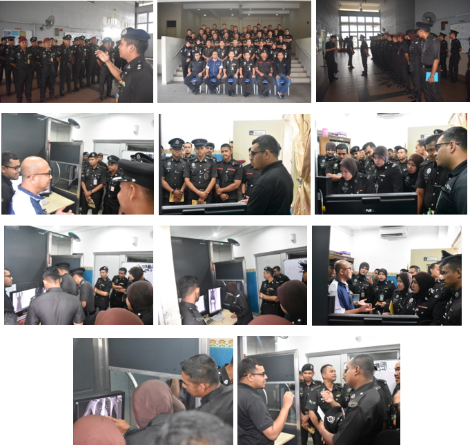 Penjara Sungai Udang, Melaka telah menerima lawatan sambil belajar dari peserta Kursus Mesin Pengimbas Badan (Body Scanner) Jabatan Penjara Malaysia pada 09.08.2018 ( Khamis ). Seramai lebih kurang 30 peserta yang terdiri dari pegawai pelbagai pangkat yang sedang mengikuti kursus tersebut di Institut Koreksional Malaysia (IKoM), Melaka telah diberi taklimat dari syarikat pengeluar mesin pengimbas serta mempelajari cara-cara penggunaan mesin pengimbas dan latihan praktikal.