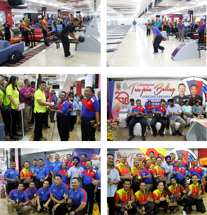 Pada 27 hingga 29 Julai 2018 telah berlangsung Kejohanan Tenpin Boling Jabatan Penjara Malaysia Tahun 2018 yang dikelola oleh Penjara Negeri Johor. Kejohanan ini telah diadakan di Lite Superbowl JB, Pelangi Leisure Mall, Johor Bahru, Johor yang telah disertai oleh 14 pasukan iaitu Johor A, Johor B, Melaka, Negeri Sembilan, Selangor A, Selangor B, Pahang A, Pahang B, Perak, Pulau Pinang, Kedah, Terengganu, Kelantan dan Sabah.