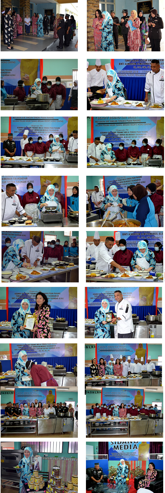 Pada 25 November 2018 ( Ahad ), KDYTM Tengku Puan Pahang, Tunku Hajjah Azizah Aminah Maimunah Iskandariah binti Almarhum Almutawakkil Alallah Sultan Iskandar Alhaj telah sudi mencemar duli berangkat ke Bengkel Pastry Penjara Bentong Pahang dalam program ? Beauty Behind The Wall ? ? Masakan Air Tangan Tengku Puan Pahang. Program ini mendapat kerjasama penuh daripada Resorts World Genting yang diterajui oleh Chef Alex Vitalise. Turut sama mengiringi baginda adalah YH Dato? Ab Basir bin Mohamed, Pengarah Penjara Negeri Pahang, YH Dato? Muhammad Zuki bin Muhammad Zain, Pengarah Penjara Bentong, PKK Aminon bin Adnan, Timbalan Pengarah Penjara Bentong , pengurusan tertinggi Penjara Bentong, Wakil Pengurusan Resorts World Genting serta Media Cetak dan Elektronik.