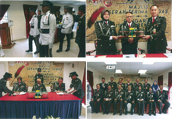Pada 21 Februari 2018 (Rabu), telah berlangsung Majlis Serah Terima Tugas Ketua Institusi di Pusat Koreksional Jasin, Melaka. Majlis dimulakan dengan upacara perarakan masuk tongkat kuasa pengarah diiringi pasukan "Beg Pipe" Sekolah Henry GUrney Telok Mas Melaka dan sesi tandatangan dokumen serah tugas daripada PP Mohd Saifullah Bin Md Akhir kepada PKP Noratimah Binti Abu Bakar disaksikan oleh KP Abdul Aziz Bin Mohamad, Pengarah Penjara Negeri Melaka.