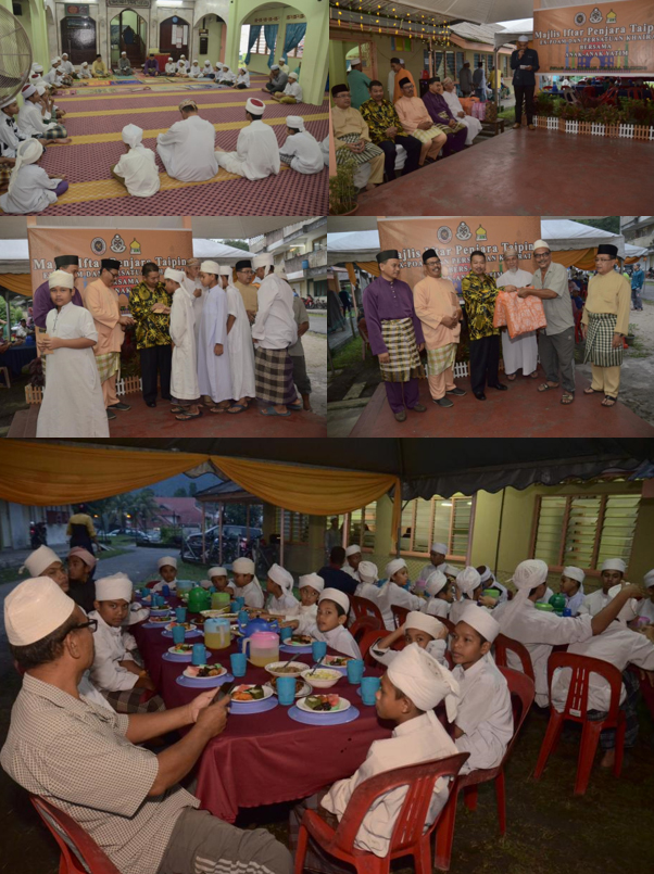 Pada 06 Jun 2018 (Rabu), bertempat di Surau Al Hikmah, Kuarters Penjara Taiping telah mengadakan Majlis Berbuka Puasa Kakitangan Penjara Taiping bersama dengan anak-anak yatim Nur Qasih. Majlis ini juga turut disertai dengan kerjasama ahli EX-POAM cawangan Taiping dan Persatuan Khairat Kematian Madrasah Pegawai Penjara Taiping. Program ini diadakan bagi memeriahkan lagi bulan ramadhan dengan pengisian yang berguna kepada masyarakat dan komuniti khususnya kepada anak-anak yatim yang memerlukan bantuan. Pada Majlis itu, seramai 25 anak yatim telah diraikan dan telah menerima sumbangan duit raya. Majlis itu juga turut dihadiri oleh Asrama Nur Qaseh, Imam/bilal Surau Penjara Taiping serta peserta tadarus yang terdiri daripada anak kakitangan yang telah disampaikan oleh PKK Charin Promwichit Pengarah Penjara Taiping. Majlis selesai selepas solat terawih.