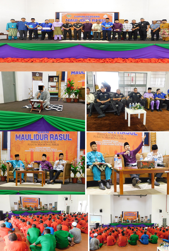 Pada 21 November 2018 (Rabu), Unit Agama, Pusat Koreksional Perlis (PKPs) telah mengadakan Program Forum Perdana Maulidur Rasul Peringkat Penghuni Pusat Koreksional Perlis (PKPs) bertempat di Dewan Aktiviti Penghuni, Pusat Koreksional Perlis (PKPs) dengan tema ?Menyantuni Umat Membawa Rahmat?. Antara pengisian program tersebut ialah dimulakan dengan bacaan al-Qur?an surah al-Mulk oleh penghuni PKPs. Barisan panel bagi Forum Perdana Maulidur Rasul ini ialah Ustaz Shafiy bin Zakaria (Pegawai Hal Ehwal Islam, JAIPs) dan Ustaz Khalilullah Amin bin Ahmad (Pensyarah, KUIPs). Program ini telah disempurnakan oleh PKP Hamid bin Taha. Seramai 160 orang penghuni dan 20 orang kakitangan telah terlibat bagi menjayakan program ini. Objektif program ini adalah bertujuan untuk melahirkan kecintaan dan kasih sayang kepada Nabi Muhammad s.a.w yang merupakan rahmat sekalian alam dan menggalakkan penghuni Pusat Korekisonal Perlis (PKPs) untuk menghayati sunnah Rasulullah s.a.w dalam aspek kehidupan seharian.