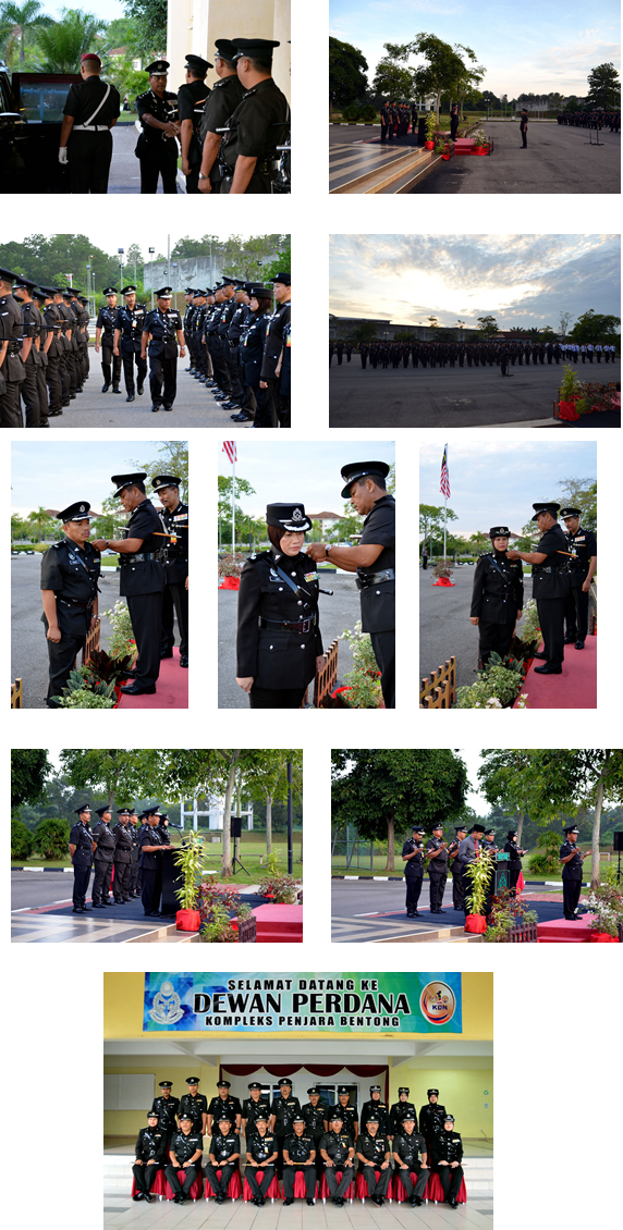 Perhimpunan bulanan bagi bulan Oktober 2018 serta majlis Pemakaian Pangkat telah diadakan pada 8 Oktober, 2018 ( Isnin ) bertempat di Dataran Dewan Perdana Penjara Bentong bermula jam 6.45 pagi. Pemakaian Pangkat Gred KA41 ? TPP Ainih binti Awang Sapli & TPP Khalid bin Mohd Yusof, Pemakaian pangkat Gred KA38 ? PPP Haslina binti Awi . Majlis telah disempurnakan oleh YH TKP Dato? Muhammad Zuki bin Muhammad Zain , Pengarah Penjara Bentong . Turut hadir PKK Mohamad bin Ismail, PKP Azhari bin Zaman serta pengurusan tertinggi Penjara Bentong. Perbarisan diketuai oleh TPP Mohamad Zulfikre bin Ismail.