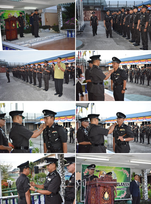 14 SEPTEMBER 2018 (Jumaat) - Pada 14 September 2018 yang lepas telah berlangsungnya Majlis Perbarisan Perhimpunan Bulanan Peringkat Institusi Pusat Koreksional Kamunting dengan jayanya. Antara program yang dijalankan pada hari berkenaan sempena dengan Hari Penjara adalah pemakaian pangkat disempurnakan oleh PKK Mohd Muslih bin Mahmud, Pengarah Pusat Koreksional Kamunting kepada PPP Mohd Azmen bin Ibrahim, KIP Mohd Zaki bin Mat Zain, SI Abd Rahim bin Omar dan KPL (TBBK) 15011 Mohd Khairul Rahimi bin Esamil. Seterusnya adalah penyampaian Sijil Cemerlang Bulanan kepada 10 penerima dan Sijil Penghargaan kepada 3 penerima atas kejayaan dan sumbangan untuk menaikkan nama baik Institusi.