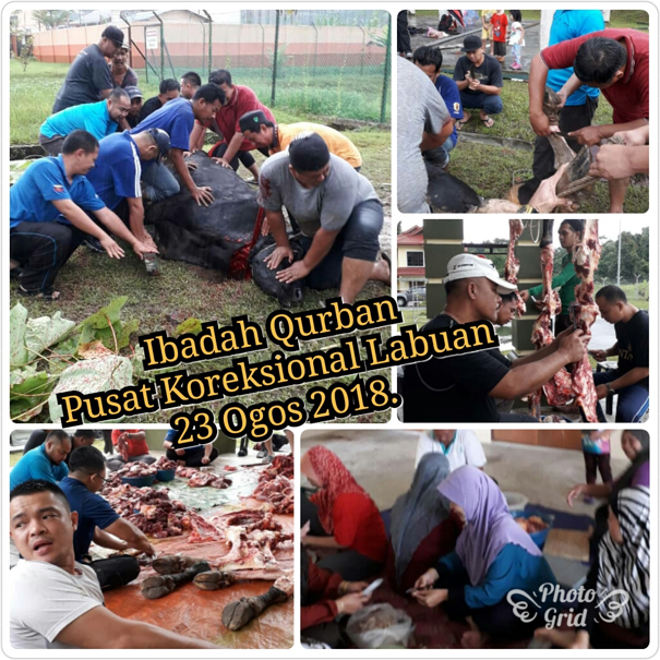Pada 23 Ogos 2018 (Khamis) bersamaan 11 Zulhijjah 1439H telah diadakan Program Ibadah Korban peringkat Kakitangan Pusat Koreksional Labuan yang diketuai oleh PP Jaafar bin Timbang, Timbalan Pengarah Pusat Koreksional Labuan. Antara pengisian program yang bermula seawal jam 07.00 pagi ini ialah aktiviti gotong-royong penyembelihan (1) ekor lembu dan pembahagian daging korban kepada semua pegawai dan kakitangan Pusat Koreksional Labuan, bacaan Tahlil dan Doa Selamat yang diadakan di Surau Abu Ayyub Al Anshari iaitu surau Taman Bakti, Kuarters Kakitangan Pusat Koreksinal Labuan yang dikendalikan oleh Ustaz Mohamad Najah bin Elias dan Ustaz Muhamad Firdaus bin Abdullah, Pegawai BAPEM Pusat Koreksional Labuan.