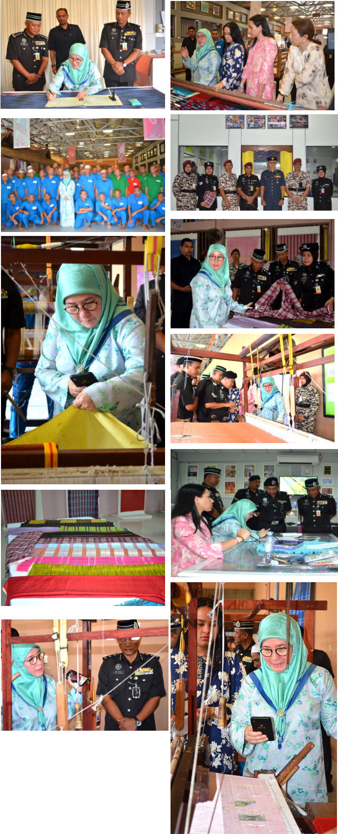 KDYMM Seri Paduka Baginda Raja Permaisuri Agong Tunku Hajah Azizah Aminah Maimunah Iskandariah Binti Al Marhum Al Mutawakkil Alallah Sultan Iskandar Al Haj berkenan mencemar duli ke Bengkel Tenun, Penjara Penor, Kuantan, Pahang Darul Makmur Pada 26 Mac 2019 ( Selasa ). Keberangkatan Tiba baginda disambut oleh YH. Komisioner Dato Ab. Basir Bin Mohamad, Pengarah Penjara Negeri Pahang, YH. Penolong Kanan Komisioner Dato Abu Hasan Bin Hussain, Pengarah Penjara Penor, Pegawai- Pegawai Kanan Jabatan Penjara Malaysia, Pegawai- Pegawai Istiadat Dan Protokol Istana Negara serta Istana Pahang, Polis Diraja Malaysia ( PDRM ) serta Angkatan Tentera Malaysia ( ATM ).