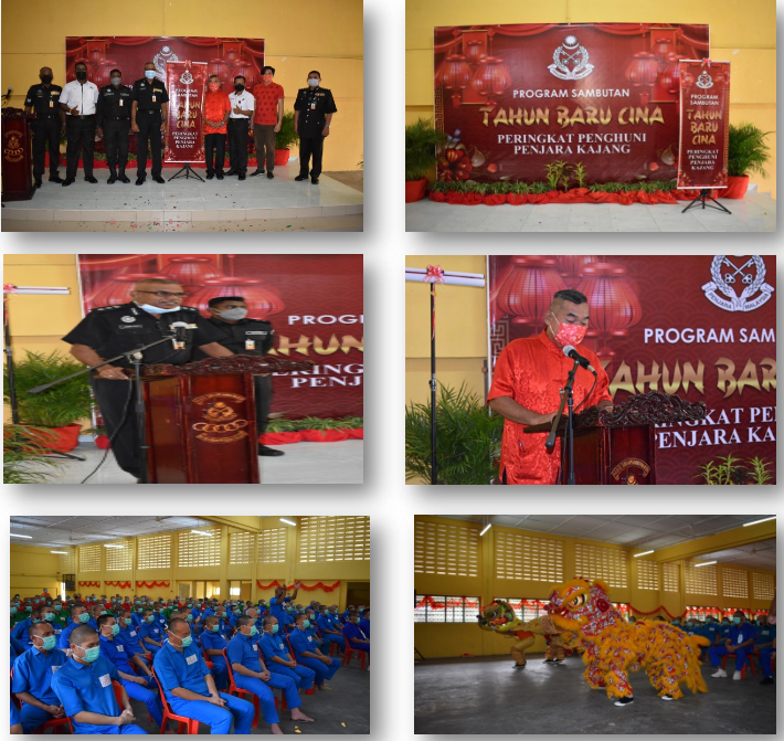 Pada 07 Februari 2022 (Isnin) bertempat di Dewan CD, Penjara Kajang telah diadakan Program Sambutan Tahun Baru Cina Peringkat Penghuni Penjara Kajang. Seramai 210 penghuni yang terlibat dalam program tersebut. Majlis telah disempurnakan oleh,PKP Muhammad Kamal Shamsuddin, PKP Anbalagan A/L Subramaniam. KIP Mohd Shahril bin Yahaya dan IP Tharumanraj A/L Nadaraja (Pegawai Penyelaras Lain-Lain Agama) dan Pengerusi NGO Persatuan Masyarakat Prihatin Zi Zai Yuan di Kuala Lumpur En.Chang Kian Hock dan Pegawai-pegawai Pemulihan. Majlis diserikan lagi dengan persembahan tarian singa dan nyanyian koir sebagai tanda perasmian. Program ini diadakan bertujuan untuk meraikan warga penghuni penjara yang berketurunan Cina serta mewujudkan satu perhubungan yang baik antara wakil-wakil NGO dengan pihak Penjara. Majlis berakhir pada jam 12.00 tengah hari.