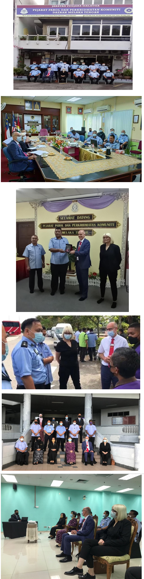 Pada 11.3.2022 Parol dan Perkhidmatan Komuniti Melaka telah menerima lawatan dari Pegawai Her Majesty's Prison and Probation Service (HMPPS) United Kingdom bagi melihat pengoperasian Program Parol di Melaka khususnya Pelaksanaan Program Perintah Kehadiran Wajib. Delegasi United Kingdom diketuai oleh Mr. David Redhouse bersama Ms. Deborah Hulston.