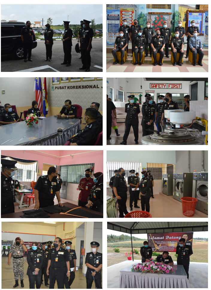 07 April 2022 (Khamis) Satu Lawatan Kerja oleh TKP Roslan bin Haji Mohamed, Pengarah Penjara Negeri Melaka telah diadakan di Pusat Koreksional Jasin, Melaka. Lawatan kerja tersebut disambut oleh PKP Zalina binti Mohd Yunus, Pengarah Pusat Koreksional Jasin, Melaka bersama PP Mohd Marzuki bin Ibrahim, Timbalan Pengarah dan TPP Aswari bin Che Ibrahim serta Pegawai Kanan institusi ini. Lawatan Kerja tersebut dimulakan dengan sesi taklimat ringkas daripada PKP Zalina binti Mohd Yunus yang diadakan di Bilik Mesyuarat Cempaka dan diikuti dengan ucapan ringkas daripada TKP Roslan bin Haji Mohamed dan seterusnya Pengarah Penjara Negeri membuat lawatan ke Pejabat Pentadbiran, Pejabat Pengoperasian, Bengkel Dapur, Bengkel Jahit, Bengkel Dobi dan Blok Damai (penempatan penghuni). Sesi Lawatan Kerja diteruskan ke kawasan tanaman sayur-sayuran berbuah seperti bendi, terung, serai, nanas, halia, keledek serta tanaman langskap sayur-sayuran berdaun seperti sawi bunga, kangkung, kailan, sawi pendek, bayam, kobis tanah rendah termasuk tanaman secara hidroponik seperti timun jepun dan tanaman secara fertigasi seperti cili kulai 461. Lawatan Kerja diakhiri dengan menandatangani Buku Pelawat di Pusat Pengumpulan Ladang (PPL) institusi ini.