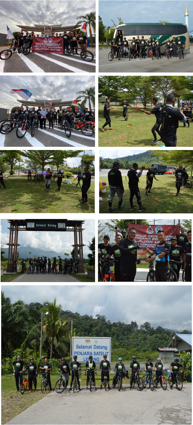 17 Mac 2022 (Khamis), PKP Zalina binti Mohd Yunus, Pengarah Pusat Koreksional Jasin, Melaka bersama PP Mohd Marzuki bin Ibrahim, Timbalan Pengarah Pusat Koreksional Jasin, Melaka telah merasmikan pelepasan seramai (17) orang peserta Kursus Kecergasan & Program Berbasikal Jelajah Ukhuwah Pusat Koreksional Jasin, Melaka ke Penjara Satelit Ledang, Johor pada Jam 7.30 pagi. Jarak perjalanan kursus ini adalah 44 kilometer melibatkan peserta yang perlu berkayuh diiringi Satu Pengiring Polis Bermotosikal. Para peserta telah tiba di Penjara Satelit Ledang, Ledang dan telah disambut oleh TPP Iftitah, Komandan Penjara Satelit Ledang, Johor pada jam 12.30 tengahari.