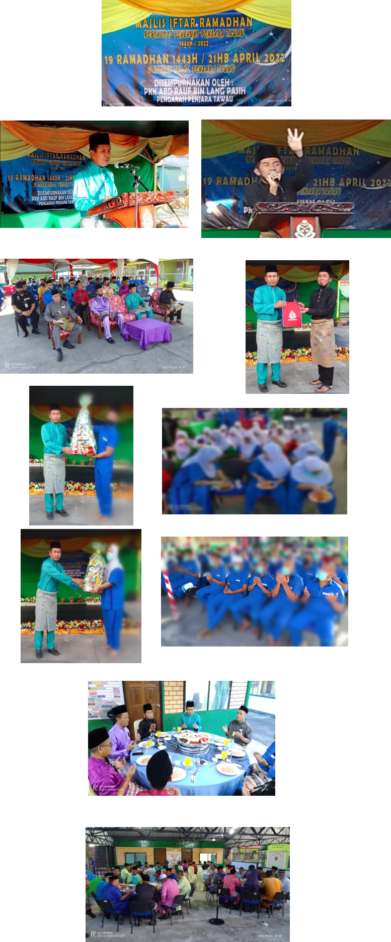 21 April 2022 ( Khamis ) Bersamaan 19 Ramadhan 1443H - Majlis Iftar Ramadhan bersama Penghuni Peringkat Penjara Tawau telah diadakan pada hari ini bertempat di Dataran Insaf Penjara Tawau.