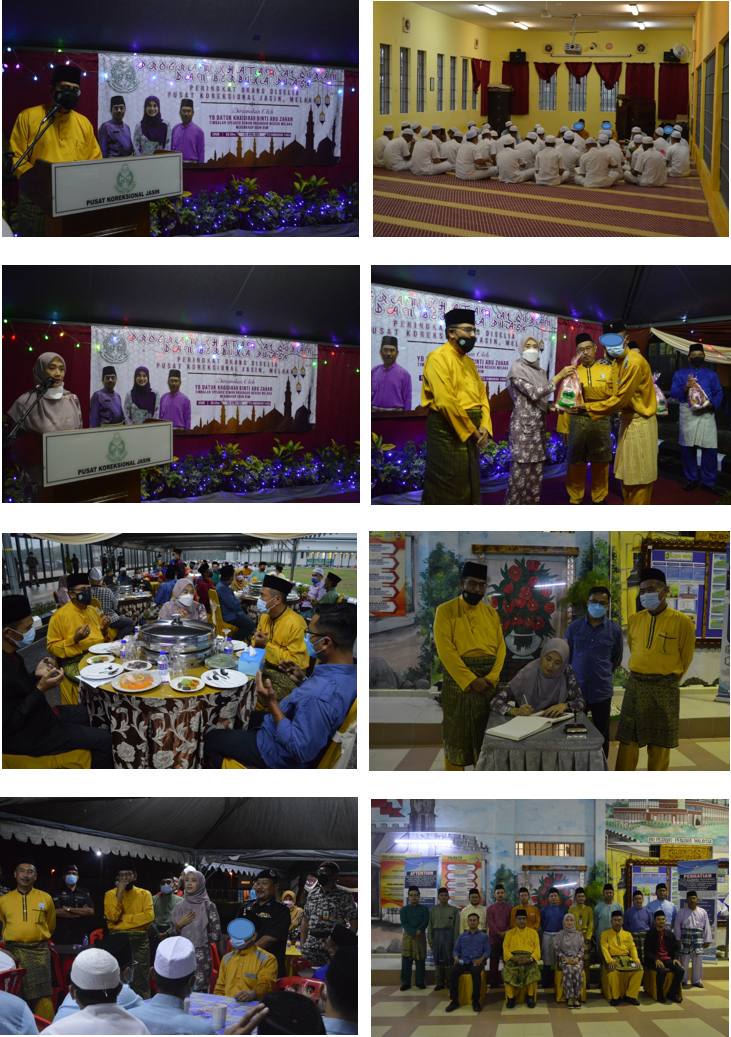 25 Mei 2022 bersamaan 23 Ramadan 1443H (Isnin), bertempat di surau Al-Hidayah, Pusat Koreksional Jasin, Melaka telah diadakan Program Tadarus dan Khatam Al-Quran sempena Majlis Berbuka Puasa Peringkat Penghuni bagi tahun 1443H/2022M. Program pada kali ini telah diserikan dengan kehadiran tetamu jemputan iaitu YB Datuk Khaidira binti Abu Zahar, Ahli Dewan Undangan Negeri kawasan Rim merangkap Timbalan Speaker Dewan Undangan Negeri Melaka, bersama TKP Roslan bin Hj Mohamed, Pengarah Penjara Negeri Melaka dan PP Mohd Marzuki bin Ibrahim, Timbalan Pengarah Pusat Koreksional Jasin, Melaka.