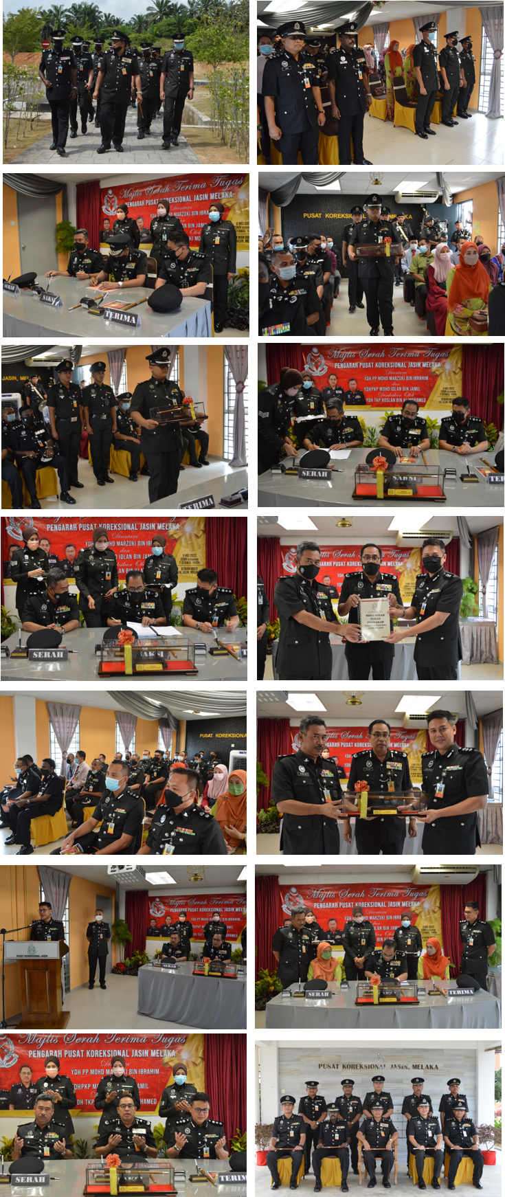 09 Mei 2022 (Isnin) bertempat di Dewan Orkid Pusat Koreksional Jasin, Melaka telah berlangsung Majlis Serah Terima Tugas Pengarah Pusat Koreksional Jasin, Melaka diantara PP Mohd Marzuki Bin Ibrahim, Timbalan Pengarah Pusat Koreksional Jasin, Melaka dengan PKP Mohd Idlan Bin Jamil, Pengarah Pusat Koreksional Jasin, Melaka yang baru disaksikan oleh TKP Roslan Bin Haji Mohamed, Pengarah Penjara Negeri Melaka. Majlis turut dihadiri oleh Ketua-Ketua Institusi Penjara Negeri Melaka, pegawai-pegawai kanan dan kakitangan institusi ini.