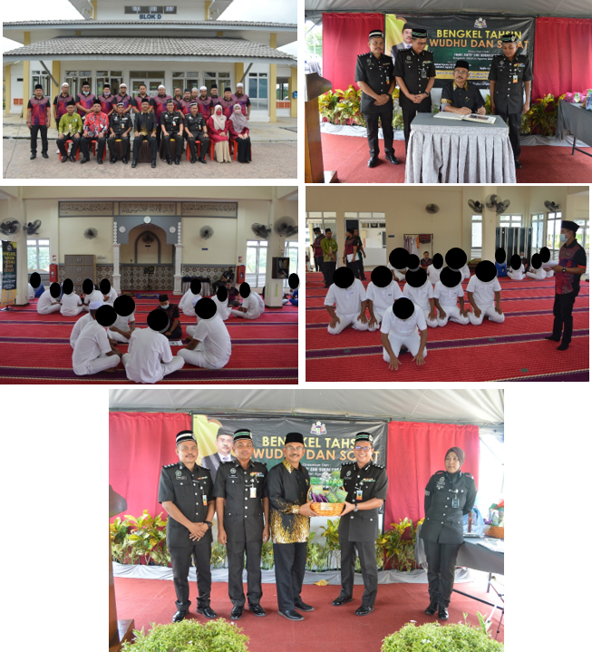 25 Ogos 2022 (Khamis), Pusat Koreksional Jasin, Melaka telah mengadakan Bengkel Tahsin Wuduk dan Solat Peringkat Orang Diselia (ODS). Bengkel ini merupakan kerjasama Pejabat Agama Islam Daerah Jasin, Melaka dan Majlis Guru Besar-Guru Besar SRA JAIM Daerah Jasin, Melaka telah diadakan di Surau An Nur, Pusat Koreksional Jasin, Melaka. Bengkel bermula dari jam 0800 pagi sehingga jam 0230 petang telah diakhiri dengan Majlis Perasmian Penutup yang telah disempurnakan oleh Pengarah Jabatan Agama Islam Melaka Dato’ Che Sukri bin Che Mat. Majlis Perasmian Penutup turut dihadiri PKP Mohd Idlan bin Jamil Pengarah Pusat Koreksional Jasin Melaka, Puan Norlizawati binti Abdullah yang mewakili Kadi Daerah Jasin, Ustazah Malinda Binti Md Yunus Pengerusi Majlis Guru Besar-Guru Besar SRA JAIM Daerah Jasin Melaka, Pegawai-pegawai Kanan dan Kakitangan Pusat Koreksional Jasin, Melaka. Bengkel ini telah disertai seramai (70) ODS Muslim dan (12) Fasilitator dengan menekankan latihan amali dan praktikal.