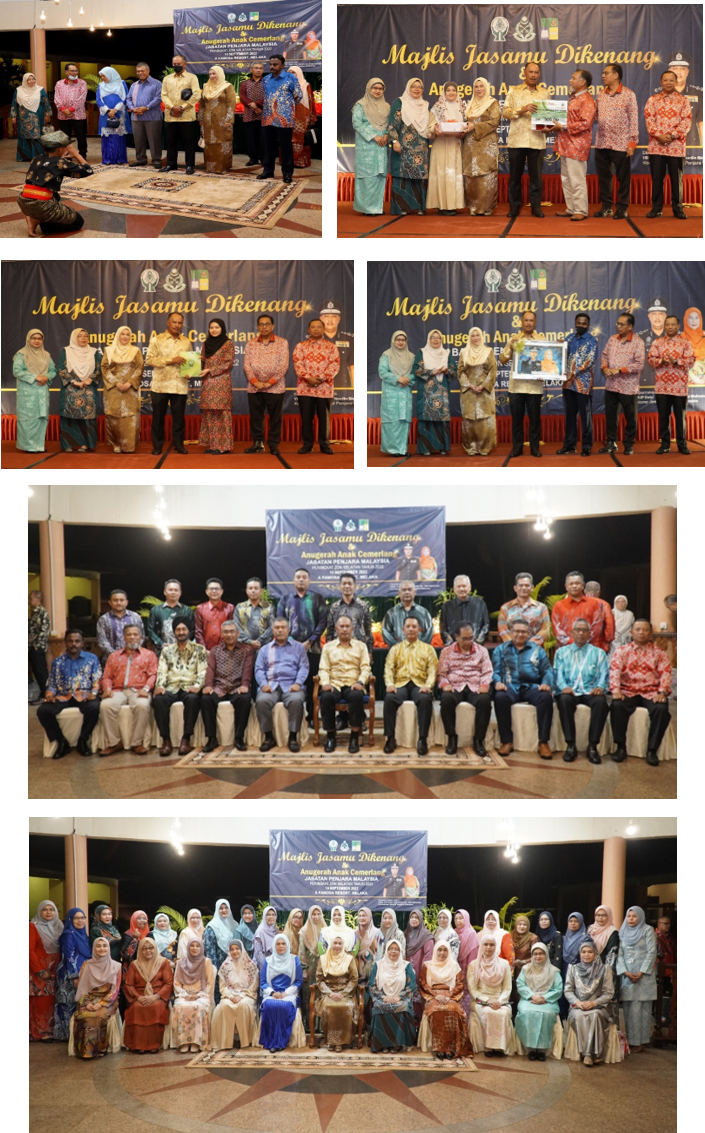 Pada 10 September 2022 (Sabtu), bagi mengenang jasa kepada pesara-pesara Jabatan Penjara Malaysia dan anak-anak kakitangan yang cemerlang dalam peperiksaan, telah diadakan Majlis Jasamu Dikenang & Anugerah Anak Cemerlang Peringkat Zon Selatan Tahun 2022 di Ballroom A’Famosa Golf & Country Resort, Melaka. Majlis telah disempurnakan oleh YBhg. KJP Dato’ Hj Nordin bin Hj Muhamad (Komisioner Jeneral Penjara Malaysia). Turut hadir, YBhg. Datin Hjh Zihana binti Mohd Zin (Yang Dipertua PERSIAP), YBhg. TKJP Dato’ Hj Abdul Aziz bin Abdul Razak (Timbalan Komisioner Jeneral Penjara – Keselamatan dan Inteligen), YBrs. TKJP Abd Kadir bin Rais (Timbalan Komisioner Jeneral Penjara - Pengurusan), YBhg. TKJP Dato’ Ibrisam bin Abdul Rahman (Timbalan Komisioner Jeneral Penjara – Pemasyarakatan), YBhg. KP Dato’ Narander Singh (Pengarah Pembangunan Profesionalisme), YBrs. TKP Zaidi bin Hamid (Pengerusi POA), YBrs. TKP Roslan bin Hj Mohamed (Pengarah Penjara Negeri Melaka), YBrs. TKP Ku Nawawi bin Ku Hamid (Pengarah Penjara Negeri Johor), En. Mohamad Yusri bin Hashim (Pengarah Sumber Manusia dan Pentadbiran) dan Ketua-Ketua Institusi Zon Selatan. Seramai 38 orang pesara telah menghadiri majlis ini dan 10 orang anak kakitangan yang telah mendapat keputusan cemerlang di dalam peperiksaan Sijil Pelajaran Malaysia (SPM) dan Sijil Tinggi Pelajaran Malaysia (STPM) tahun 2021. Turut disampaikan saguhati bagi mengenang jasa perkhidmatan kepada pesara yang berkhidmat melebihi 35 tahun ke atas.