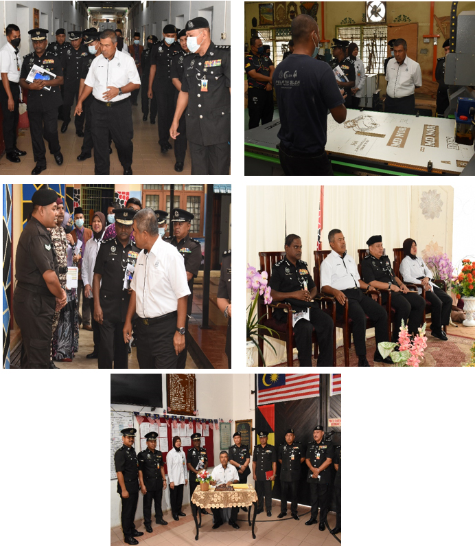 Khamis, 22 September 2022 – Lawatan kerja YBhg. Dato' Haji Abdul Aziz bin Abdul Razak, Timbalan Komisioner Jeneral Penjara (Keselamatan dan Koreksional ) bersama TKP Anathurai A/L Kalimuthu, Timbalan Pengarah Bahagian Keselamatan dan Inteligen dan TKP Zainah binti Pardi, Timbalan Pengarah Pengurusan Banduan (Seksyen Vokasional & Industri) di institusi Penjara Seremban telah disambut oleh PKP Sharil Bin Basir, Pengarah Penjara Seremban bersama pegawai-pegawai kanan Penjara Seremban. Lawatan kerja dimulakan dengan sesi taklimat ringkas oleh PKP Sharil Bin Basir yang diadakan di Bilik Mesyuarat Dahlia dan diikuti dengan ucapan oleh YBhg. TKJP Dato' Haji Abdul Aziz bin Abdul Razak. Antara pengisian program tersebut adalah lawatan ke dalam Blok Penempatan Banduan dan Bengkel Kayu serta diisi dengan persembahan Choral Speaking dan Busking oleh penghuni Penjara Seremban.