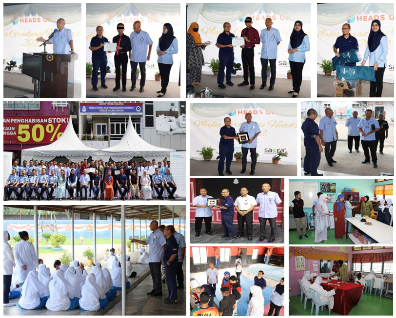 Pada 11 November 2022, Pejabat Pengarah Penjara Negeri Melaka dan PPD Melaka Tengah telah menganjurkan Majlis Graduasi Program Heads Up Siri 3 (Penutup) bersama PBL SHG, ODP & OBB dengan kerjasama Syarikat Saora Industries Sdn Bhd dan Syarikat Ekuiti Nasional Berhad (EKUINAS). Majlis ini dihadiri oleh PKK Abdul Rahman bin Taib, Timbalan Pengarah Parol dan Perkhidmatan Komuniti IPPM dan PKK Norneelah binti Shukor, Timbalan Pengarah Penjara Negeri Melaka. Turut hadir sebagai penaja program ialah Tuan Hizwani Hassan Pengarah Hal Ehwal Berkepentingan Ekuiti Nasional Berhad (Ekuinas) serta Puan Farzena Balan Pengarah Urusan Saora Industries. Majlis Graduasi Program Heads Up bertujuan memberi pengiktirafan dan penghargaan kepada 50 peserta terdiri daripada PBL-SHG, ODP dan OBB yang terlibat dengan beberapa siri kursus sebelum ini bersama Pegawai Psikologi, Perkeso, Jabatan Tenaga Rakyat dan program team building bersama veteran Komando ATM. Tujuan kursus ini diadakan untuk menerapkan disiplin yang tinggi agar menjadi individu yang berkemahiran dan mempunyai jati diri serta mampu bersaing dalam pasaran pekerjaan sebagai warganegara yang produktif dan berjiwa patriotik. Seterusnya pihak Ekuinas dan Saora Industri telah dibawa melawat ke Sekolah Henry Gurney Telok Mas Melaka bagi melihat program pemulihan yang dilaksanakan di bawah Program Sistem Latihan Dual Nasional (SLDN). Ketibaan tetamu jemputan disambut oleh PKP Zan Azim bin Aziz, Pengarah Sekolah Henry Gurney Telok Mas Melaka.