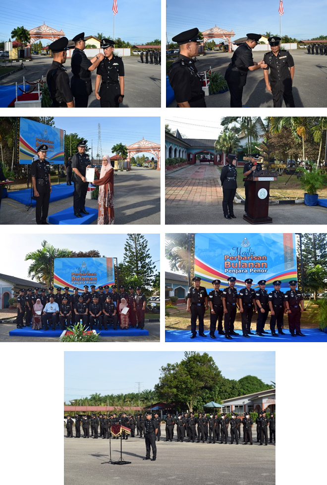 Penyampaian Pemakaian Pangkat dan Personaliti Bulanan ini telah disempurnakan oleh PKK Fayrouz bin Ahmad Zawawi, Pengarah Penjara Penor. Seramai 18 anggota yang menerima kenaikan pangkat pada majlis tersebut iaitu Penolong Penguasa Penjara (Satu), Ketua Inspektor Penjara (Satu), Sarjan Mejar Penjara (Tiga), Sarjan Penjara (11), Koperal Penjara (Dua).