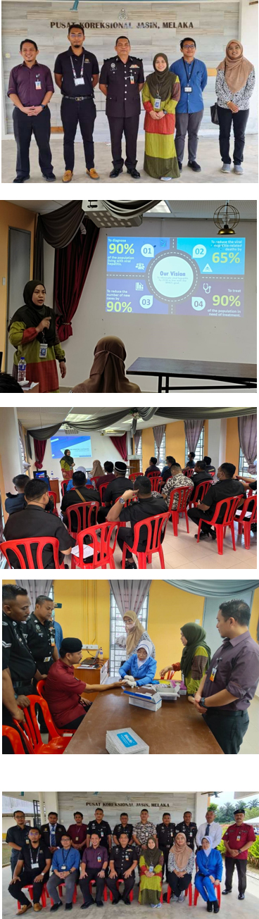 Program ini diharap berjaya memberi pendedahan kepada peserta berkaitan penyakit Hepatitis C, cara saringan dan juga rawatan yang tersedia. Kesemua kakitangan Pusat Koreksional Jasin,Melaka juga telah diberikan sijil pentauliahan untuk menjalankan ujian saringan Hepatitis C kepada banduan dan kakitangan.