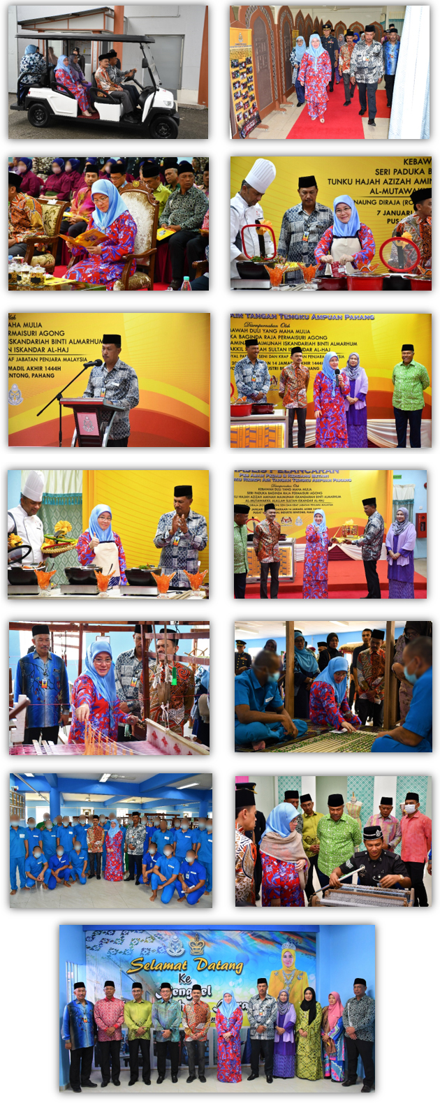 KDYMM Seri Paduka Baginda Raja Permaisuri Agong Tunku Hajah Azizah Aminah Maimunah Iskandariah binti Almarhum Al-Mutawakkil Alallah Sultan Iskandar Al-Haj berkenan berangkat ke Majlis Pelancaran Pes Asam Pedas dan Rendang Betawi dari Buku Resepi Air Tangan Tengku Ampuan Pahang. Majlis berkenaan berlangsung di Pusat Vokasional Industri Penjara Bentong. Hadir sama pada majlis ini adalah YBhg. Datuk Mohamad Fauzi bin Md Isa, Timbalan Ketua Setiausaha (Dasar dan Kawalan) Kementerian Dalam Negeri, YBhg.KJP Dato' Haji Nordin bin Haji Muhamad, Komisioner Jeneral Penjara, YBhg. TKJP Dato' Haji Abdul Aziz Bin Abdul Razak, Timbalan Komisioner Jeneral Penjara(Keselamatan&Koreksional) serta YBhg. TKJP Dato' Ibrisam Bin Abdul Rahman Timbalan Komisioner Jeneral Penjara(Pemasyarakatan). Baginda juga berkenan untuk berangkat ke Bengkel Tenun Pahang Diraja,Penjara Bentong untuk melihat hasil serta cara tenunan dan memberi tunjuk ajar berkenaan tenunan kepada penghuni di Penjara Bentong.