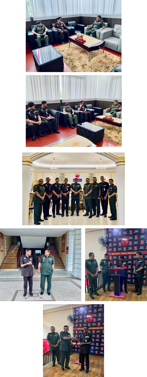 3 Mac 2023 : Telah diadakan kunjungan hormat Pegawai Yang Menjaga Penjara Sungai Petani, PKP Abd Zaini Ibrahim ke Briged 6 Angkatan Tentera Malaysia, Kem Lapangan Terbang, Sungai Petani. Kunjungan disambut oleh YBhg. Brig. Jen Dato’ Mohd Akif Hj. Yusoff, Panglima Briged 6 dan Pegawai-Pegawai Pemerintah Divisyen. Mengiringi PYM bersama, Pegawai Pendaftar institusi, Insp. Amar Zainudin, Pegawai Pembangunan institusi, Insp. Iskandar Kamaruldzaman dan Mej(w) Mohd Helmi, penyelaras bersama kunjungan. Kunjungan adalah bagi mengeratkan lagi hubungan antara Angkatan Tentera Malaysia dan Institusi Penjara Sungai Petani dalam usaha pemulihan banduan secara konstruktif serta membincangkan beberapa usahasama yang boleh memberi manfaat kepada dua-dua pihak. Kunjungan hormat selesai jam 12.00 tengahari dengan sesi penyerahan plak cenderamata dan jamuan minum pagi yang dihoskan oleh YBhg. Dato Panglima Briged 6.