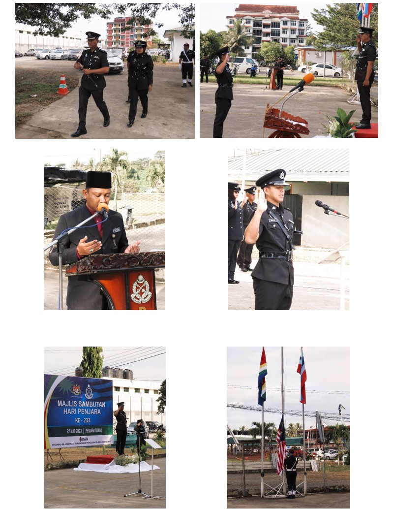RABU, 22 Mac 2023 – Berlangsungnya Majlis Sambutan Hari Penjara Ke-233 peringkat Institusi Penjara Tawau, Sabah bertempat di Gelanggang Bola Tampar Penjara Tawau. Majlis disempurnakan oleh Penguasa Supian Bin Kamarudin, Timbalan Pengarah Penjara Tawau diiringi Timbalan Penguasa Nurul Atika Binti Salahuddin. Seramai 137 anggota lain-lain pangkat hadir dalam majlis perbarisan tersebut. Perbarisan diketuai oleh Timbalan Penguasa Walter Blasius dan dimulakan dengan bacaan doa serta lafaz ikrar jabatan. Seterusnya, bacaan Amanat Komisioner Jeneral Penjara yang disampaikan oleh Penguasa Supian Bin Kamarudin.