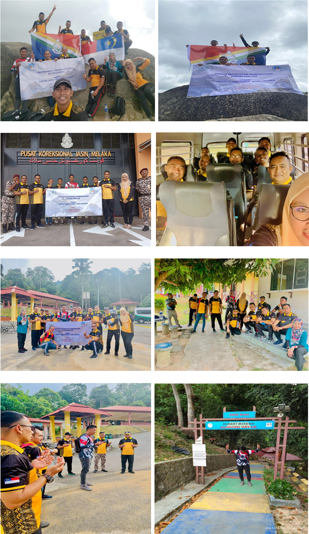 21 Mac 2023 (Selasa), Unit Pengurusan Psikologi dengan kerjasama Jawatankuasa AKRAB Pusat Koreksional Jasin, Melaka telah mengadakan Kursus Kecergasan, Pembangunan Kendiri dan CSR Siri 1/2023; Mendaki Gunung Datuk, Negeri Sembilan bersempena dengan Sambutan Hari Penjara Ke-233. Acara pelepasan peserta kursus telah dilakukan oleh Timbalan Pengarah, PP Mohd Suffian bin Md Said diikuti dengan bacaan doa oleh Ustaz Abdul Lathif bin Ismail. Kursus ini disertai seramai 13 peserta terdiri daripada Jawatankuasa AKRAB, pegawai kanan, anggota lain-lain pangkat dan kakitangan awam. Objektif kursus ini dijalankan adalah untuk mewujudkan suatu bentuk kursus dan latihan berkonsepkan kehidupan alam semulajadi secara berkumpulan yang memberi manfaat kesihatan mental dan fizikal kepada peserta program. Selain itu, ianya juga bertujuan untuk menerapkan semangat kerjasama berpasukan dan interaksi menyeluruh kepada peserta, melatih ketahanan mental dan fizikal bagi menempuhi segala cabaran kerjaya dan kehidupan seharian serta mengeratkan silaturrahim di kalangan peserta program kerana aktiviti pendakian adalah aktiviti berkumpulan yang memerlukan semangat espirit de corp.
