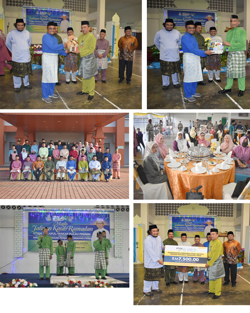 Majlis diteruskan dengan penyampaian Mock Cheque oleh YBhg. Dr Mohamed Hadi bin Abd Hamid, Ketua Jabatan Syariah, Etiqa Takaful Berhad kepada PKK Khairil Nizam bin Anuar, Pengarah Penjara Seberang Perai dan Penyerahan sumbangan daripada Wakaf Pulau Pinang kepada Penghuni Penjara berupa set solat.