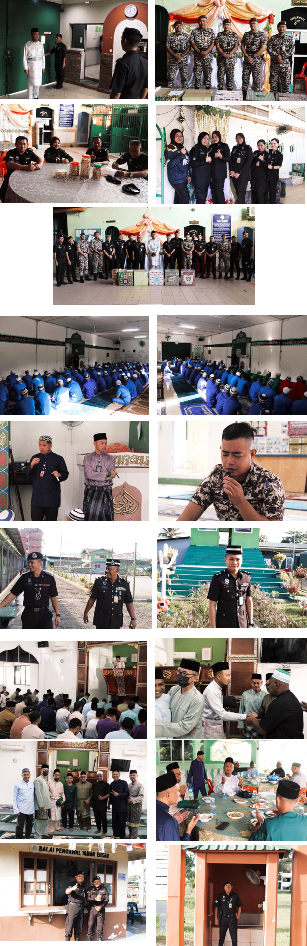 Sabtu - 22 April 2023, Pengarah Penjara Tawau, PKK Kamarul Zaman Bin Ali Zaman menyampaikan sumbangan kuih raya sempena Hari Raya Aidilfitri kepada pegawai yang bertugas bagi menghargai masa dan bertujuan mengeratkan silaturrahim serta melaksanakan solat sunat Aidilfitri di surau An-Nur Taman Ehsan.