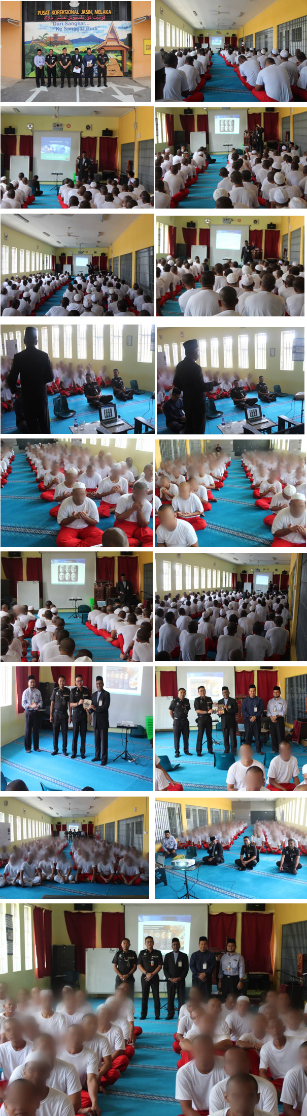 24 Oktober 2023, seramai lebih 120 orang penghuni Pusat Koreksional Jasin Melaka telah terlibat dalam Program Motivasi Diri bertajuk Asal Kejadian Insan. Ceramah Motivasi ini telah disampaikan oleh Dr. Mohamed Sabir Bin Jamaludin, Presiden Pertubuhan Alif. Program ini telah berlangsung di Surau Al-Hidayah, PK Jasin bermula dari jam 9.00 pagi hingga 12:00 tengah hari. Pertubuhan Alif juga telah menyumbang waqaf buku ilmiah bertajuk Cabaran Dakwah 25 Rasul dan Cabaran Dakwah Dan Pemerintahan Khulafa’ Ar-Rasyidin untuk bacaan dan rujukan penghuni di Institusi ini. Turut hadir menjayakan program ini PKP Mohd Idlan Bin Jamil, Pengarah Pusat Koreksional Jasin Melaka.