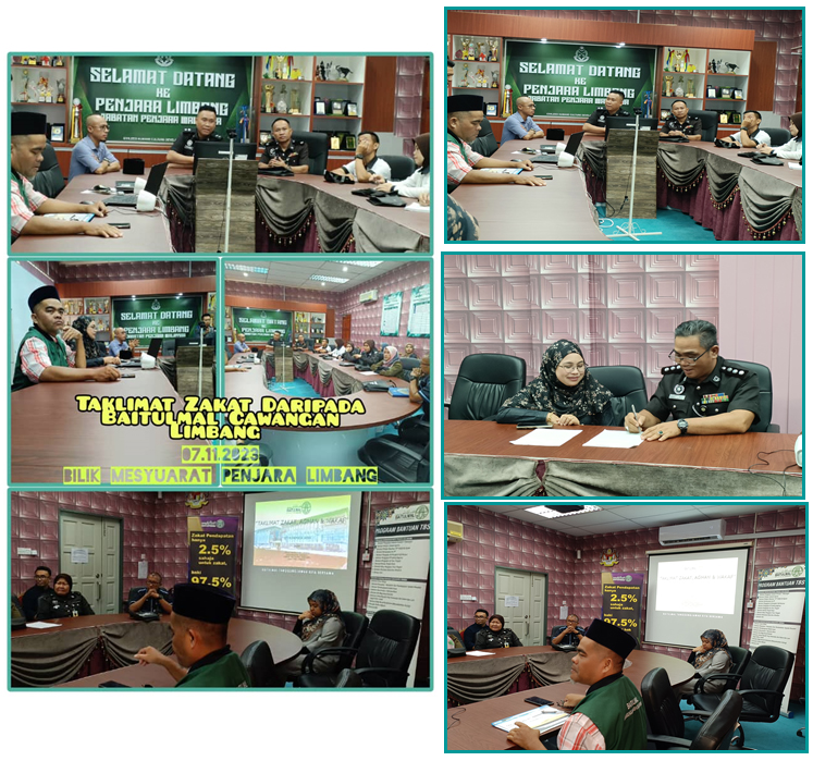 Pada 07 November 2023 bersamaan dengan 23 Rabiulakhir 1445H, Penjara Limbang telah mengadakan taklimat tentang zakat dan wakaf bertempat di Bilik Mesyuarat, Penjara Limbang bermula pada 3.00 petang. Seramai 20 orang pegawai dan kakitangan Penjara Limbang yang mengikuti taklimat tersebut.