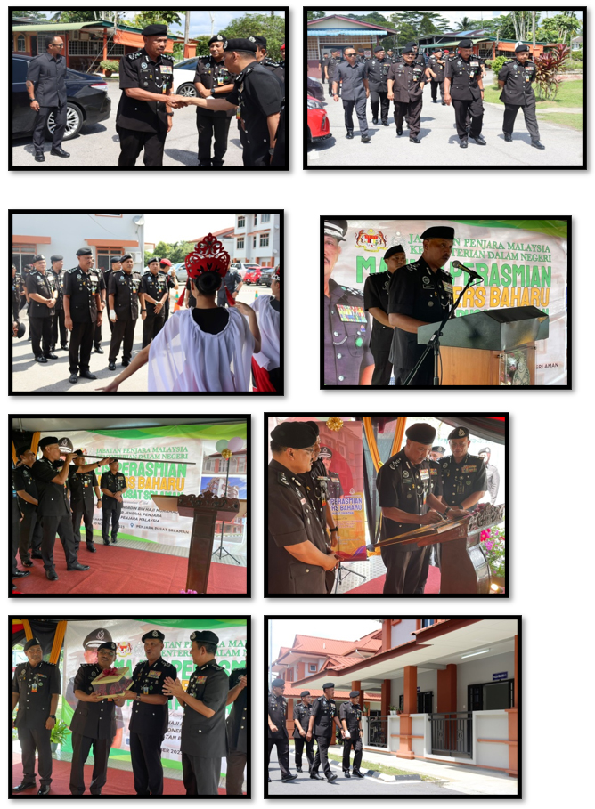 YBhg. Komisioner Jeneral Penjara Malaysia Datuk Haji Nordin Bin Haji Muhamad telah merasmikan Kuarters Baharu Penjara Pusat Sri Aman dengan gimik menyumpit belon dan menandatangani Plak Kuaters Baharu, penyampaian cenderhati kepada YBhg Datuk telah disampaikan oleh Yang Dihormati Timbalan Komisioner Penjara Tuan Mohd Andri bin Md Ridzwan Pengarah Penjara Sarawak. Selesai perasmian, dif-dif kehormat melawat ke kuarters rumah contoh dan bergambar bersama di hadapan blok Sri Kenyalang Kuarters Baharu Penjara Pusat Sri Aman.