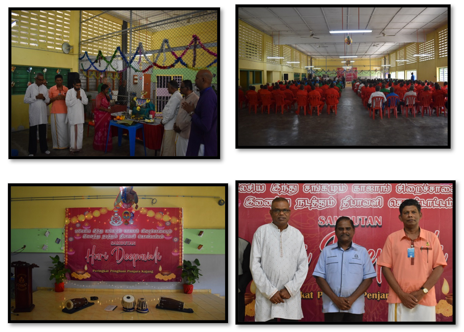 Pada 28 Oktober 2023 (Sabtu), Unit Program Pembangunan Insan (Lain-lain Agama) Penjara Kajang telah mengadakan sembahyang khas sempena Sambutan Hari Deepavali Peringkat Penghuni Penjara Kajang 2023 bersama Persatuan Malaysia Hindu Sangam yang melibatkan penyertaan seramai 250 banduan biasa dan 06 banduan akhir . Program tersebut telah berlangsung di Dewan AB, Penjara Kajang. Antara pengisian program pada kali ini ialah persembahan nyanyian lagu-lagu suci bersama banduan dan ceramah dari wakil Malaysia Hindu Sangam, En Alagandran A/L Sevasamy serta pemberian hadiah kepada banduan yang menang dalam pertandingan Nyanyian Lagu Tamil. Program ini diserikan dengan kehadiran oleh Tuan Anathurai A/L Kalimuthu, PKP Anbalagan A/L Subramaniam, Ketua Bahagian Keselamatan dan Inteligen dan IP Tharumanraj A/L Nadaraja, Ketua Unit Lain-Lain Agama. Program ini berobjektifkan meningkatkan semangat dan harapan agar banduan menjadi manusia yang berguna apabila dibebaskan kelak.