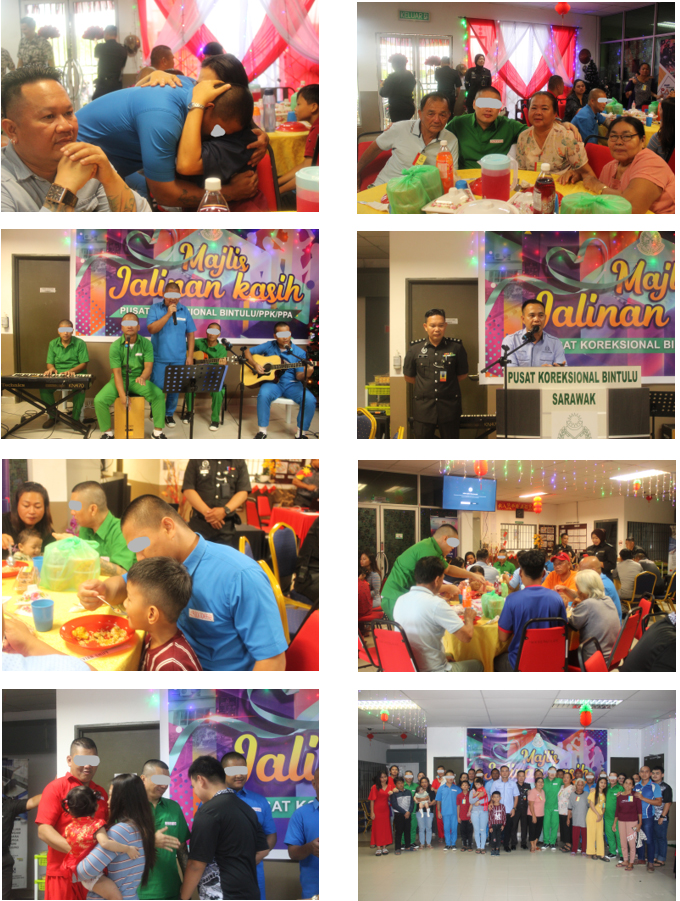 Pada 23 Februari 2024 (Jumaat), telah diadakan Majlis Jalinan Kasih Tahun Baru Cina peringkat banduan Pusat Koreksional Bintulu/ PPK/ PPA bertempat di Tempat Jumpa Pusat Koreksional Bintulu/ PPK/ PPA. Majlis ini merupakan sebahagian daripada program pemulihan dan tahunan yang dianjurkan oleh Unit Program Pembangunan Insan bagi memberi penghargaan kepada banduan yang terpilih berdasarkan kriteria yang telah ditetapkan. Seramai 8 orang banduan dan 24 orang keluarga banduan telah terlibat pada kali ini. Majlis dimulakan dengan tayangan video korporat Jabatan Penjara Malaysia dan penerangan berkaitan Civilized Humane Culture Development Centre (CHCDC), diikuti ucapan oleh Ketua Bahagian Pengurusan Banduan, TPP Thompson Ridot, jamuan makan, persembahan busking oleh banduan, dan diakhiri dengan sesi beramah mesra dan fotografi. Majlis bermula pada jam 9.00 pagi dan berakhir pada jam 11.00 pagi.