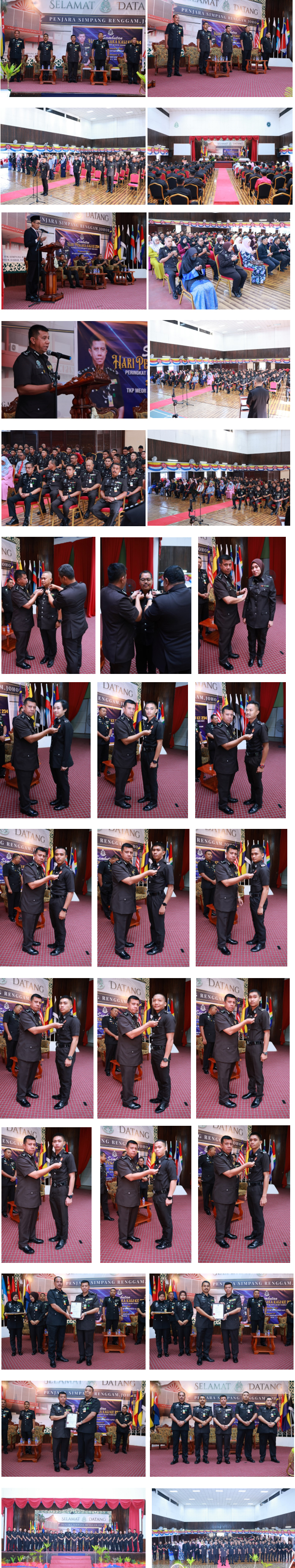 Majlis Dimulakan dengan Nyanyian Lagu Bangsa Johor, Negaraku, Bakti Setia, Bacaan Ikrar dan Perutusan Komisioner Jeneral Penjara sempena sambutan Hari Penjara Kebangsaan. Aturcara diteruskan dengan pemakaian pangkat, penyampaian pingat dan Penyerahan Sijil ISO Anti Bribery Management System (ABMS) kepada Institusi Penjara Negeri Johor. Majlis diakhiri dengan sesi bergambar bersama penerima - penerima Pangkat dan Pingat serta semua Anggota Kakitangan Penjara Negeri Johor.