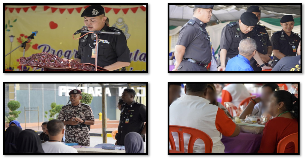 07032024 | KHAMIS : Seksyen Pemulihan, Penjara Kajang telah menganjurkan Program Tautan Kasih Penghuni Penjara Kajang Siri 2/2024 bertempat di Dataran Perhimpunan Dalam, Penjara Kajang. Seramai 39 penghuni yang menjalani hukuman Hayat, Tahanan Limpah Sultan (TLS), Seumur Hidup dan Banduan Akhir (BA) yang lahir pada bulan Mac, April dan Mei telah diraikan dalam program ini. Program ini telah disempurnakan oleh Ketua Bahagian Pengurusan Banduan dan Pemasyarakatan, PP Fadzli bin Mohamad Majidi bagi pihak Pengarah Penjara Kajang diiringi Ketua Seksyen Pemulihan, TPP Muhammad Faris Bin Rusli.Seramai 131 ahli keluarga telah hadir bagi memeriahkan majlis ini. Sokongan dan kehadiran keluarga secara bersemuka atau perhubungan melalui pelbagai kaedah lain yang telah disediakan oleh Jabatan Penjara Malaysia adalah "Modal Kepulihan" kepada penghuni untuk kekal pulih dan mampu menjalani setiap hukuman yang telah ditetapkan. Majlis turut dimeriahkan dengan nyanyian "Selamat Hari Lahir" kepada penghuni yang diraikan serta persembahan nyanyian daripada penghuni.
