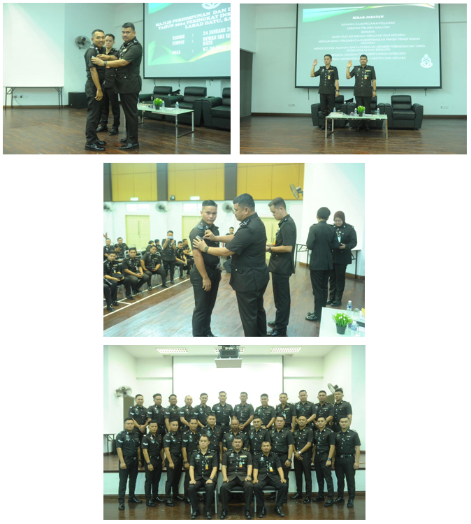 Seterusnya majlis diserikan dengan aturcara pemakaian pangkat, bacaan Amanat Tahun Baru 2024 dari YBhg. KJP Datuk Haji Nordin Bin Haji Muhamad yang disampaikan oleh PKK Nazarman Bin Haidzir, dan majlis diakhiri dengan sesi dialog bulanan.