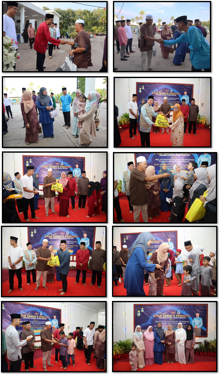 Penjara Sungai Udang, Melaka - Pada 02 April 2024 (Selasa) bersamaan 22 ramadan 1445H, Masjid Sultan Muhammad V, Penjara Sungai Udang, Melaka telah menganjurkan Majlis Iftar Jama'ie Perdana Peringkat Penjara Sungai Udang. Turut hadir YBhg. Datuk KJP Haji Nordin bin Haji Muhamad bersama YBhg. Datin Hajah Zihana Binti Mohd Zin, Yang Dipertua PERSIAP. Kehadiran Datuk KJP telah disambut oleh TKP Khairil Nizam bin Anuar, Pengarah Penjara Sungai Udang bersama YBhg. Datuk Roslan bin Hj Mohamed, Pengarah Penjara Negeri Melaka dan Ketua-Ketua Institusi Penjara Negeri Melaka. Majlis diserikan dengan kehadiran Tn. Hj. Mohd Fairus bin Ahmad, Pengerusi Global Peace Mission (GPM) Negeri Melaka, EXPOAM Negeri Melaka dan kakitangan Penjara Sungai Udang bersama keluarga. Antara pengisian majlis tersebut adalah penyampaian sumbangan daripada Global Peace Mission Negeri Melaka kepada anak-anak yatim, golongan asnaf dan saudara baru (mualaf). Selain itu, pemberian duit raya kepada anak-anak kakitangan yang telah disampaikan oleh YBhg. Datuk KJP Haji Nordin bin Haji Muhamad bersama YBhg. Datin Hajah Zihana Binti Mohd Zin.