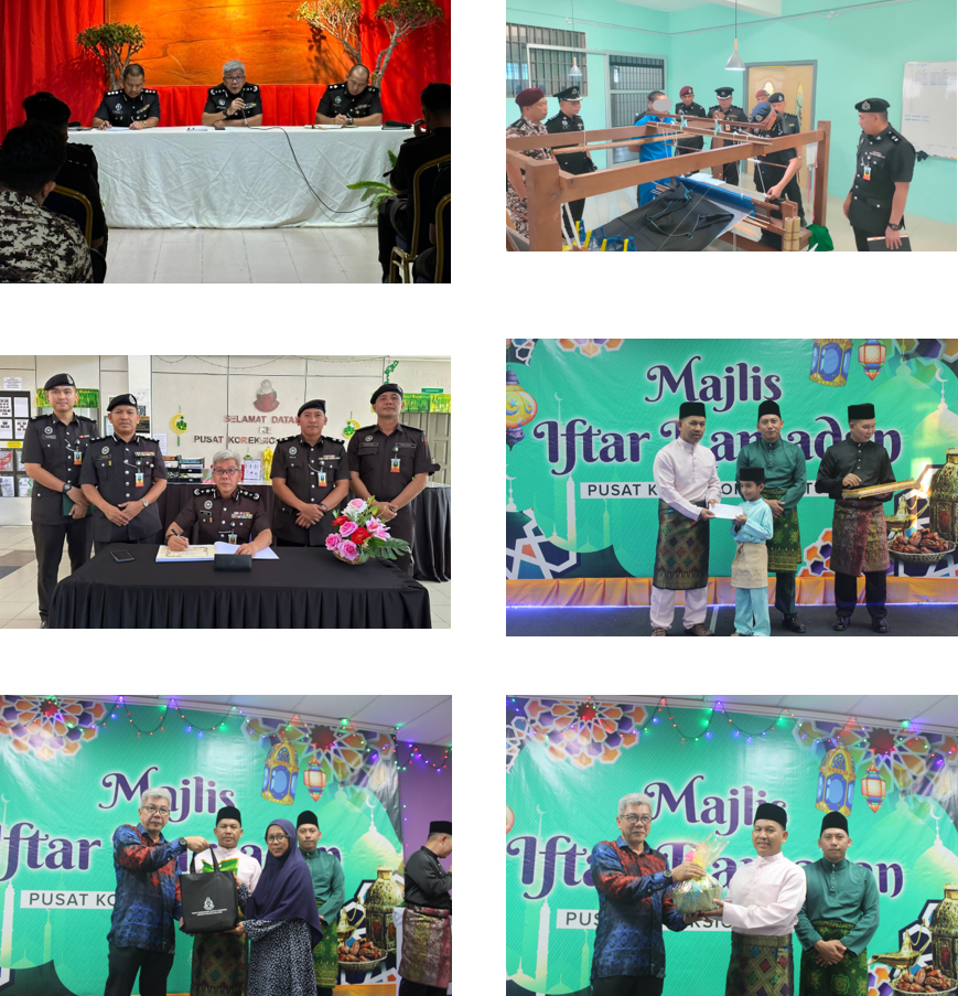 Pada 1 April 2024 (Isnin), Pengarah Penjara Sarawak, TKP Teyun Thian Eim telah mengadakan mesyuarat dan lawatan kerja ke Pusat Koreksional Bintulu/ PPK/ PPA. Mesyuarat yang bermula pada jam 9.30 pagi itu juga turut dihadiri oleh PKP Zakaria bin Mat Jusoh, Pengarah Pusat Koreksional Bintulu/ PPK/ PPA. Setelah selesai mesyuarat pada jam 11.30 pagi, beliau telah mengadakan lawatan ke Blok Bengkel yang menempatkan Bengkel Tenun, Bengkel Jahit dan Dobi. Pada sebelah petang beliau telah mempengerusikan Program Executive Talk yang telah dihadiri seramai 50 orang kakitangan institusi ini bermula pada jam 2.30 petang dan berakhir pada jam 4.15 petang. Beliau juga turut hadir ke Majlis Iftar Ramadan Kakitangan Pusat Koreksional Bintulu/ PPK/ PPA bagi bersama-sama memeriahkan majlis tersebut. Selain itu, majlis juga turut diserikan dengan kehadiran Ketua-Ketua Institusi dan wakil-wakil institusi Penjara Sarawak. Antara pengisian majlis tersebut adalah Khatam Al-Quran, penyampaian cenderahati kepada yang terlibat dengan tadarus Al-Quran serta petugas Surau At-Taqwa sepanjang bulan Ramadan iaitu Imam, Bilal, dan Marbot. Majlis juga telah menjemput dan menyampaikan sumbangan kepada 10 orang golongan asnaf sekitar Bintulu dan sumbangan raya kepada kakitangan Pusat Koreksional Bintulu/ PPK/ PPA. Majlis diakhiri dengan solat tarawih berjemaah dan moreh.