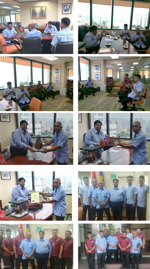 Program Kunjungan Hormat Penjara Taiping Ke Pejabat Urusan Yusuf Taiyoob Sdn. Bhd. telah diadakan pada hari Selasa, 07 Mei 2024 bersamaan 28 Syawal 1445H. Antara pengisian program ialah Taklimat Pengenalan Pengurusan dan Operasi Yusuf Taiyoob Sdn. Bhd. dan Perbincangan Jalinan Kerjasama antara Penjara Taiping dan Yusuf Taiyoob Sdn. Bhd. Penyampaian Cenderahati dan Sijil Penghargaan kepada Dato’ Seri Yusuf Taiyoob telah disempurnakan oleh PKK Nazri bin Mohamad, Pengarah Penjara Taiping. Program bermula jam 11.30 pagi dan berakhir jam 12.30 tengahari dan dihadiri oleh 8 orang pegawai dan kakitangan Unit Agama Penjara Taiping.