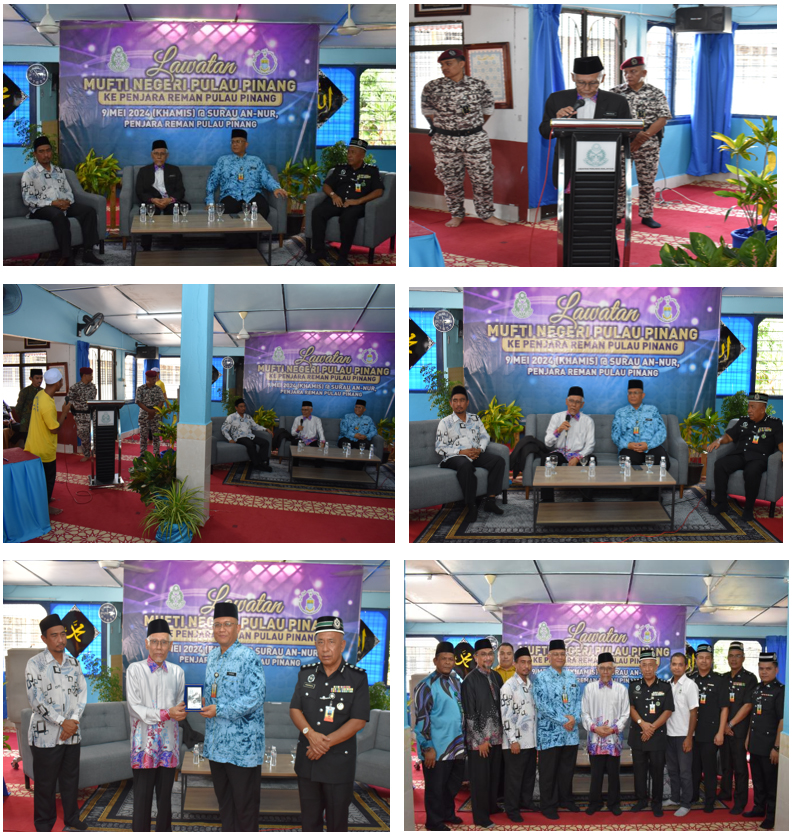 Pada 9 Mei 2024 (Khamis), bertempat di Surau An-Nur, Penjara Reman Pulau Pinang telah diadakan Lawatan Mufti Negeri Pulau Pinang Ke Penjara Reman Pulau Pinang. Turut hadir YDH. PKK Fayrouz Bin Hj. Ahmad Zawawi, Pengarah Penjara Negeri Pulau Pinang diiringi oleh PKP Ahmad Kamarrudin Bin Yaacob, Pengarah Penjara Reman Pulau Pinang serta (05) pegawai daripada Pejabat Mufti Negeri Pulau Pinang. Atur cara majlis dimulai sambutan ketibaan dengan alunan gema selawat, persembahan Marhaban dan persembahan Nasyid oleh Kumpulan An-Nur. Majlis diteruskan dengan ucapan aluan yang disampaikan oleh YDH.Pengarah Penjara Negeri Pulau Pinang dan Bicara Mufti oleh YBhg. Sahibus Samahah Dato’ Seri Dr. Wan Salim bin Wan Mohd Noor, Mufti Negeri Pulau Pinang serta sesi soal jawab bersama prospek. Turut diadakan, penyampaian istimewa potret lakaran Mufti Negeri Pulau Pinang dari prospek dan diakhiri dengan penyampaian cenderamata kenangan.