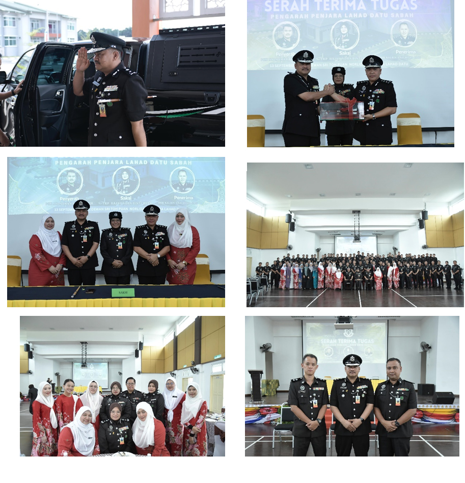 13 September 2024 (Jumaat),Penjara Lahad Datu telah mengadakan Majlis Serah Terima Tugas Pengarah Penjara Lahad Datu diantara PKK Nazarman bin Haidzir mantan Pengarah Penjara Lahad Datu Kepada PKK Kalbin Haji Mohd Said, Pengarah Penjara Lahad Datu yang baharu.