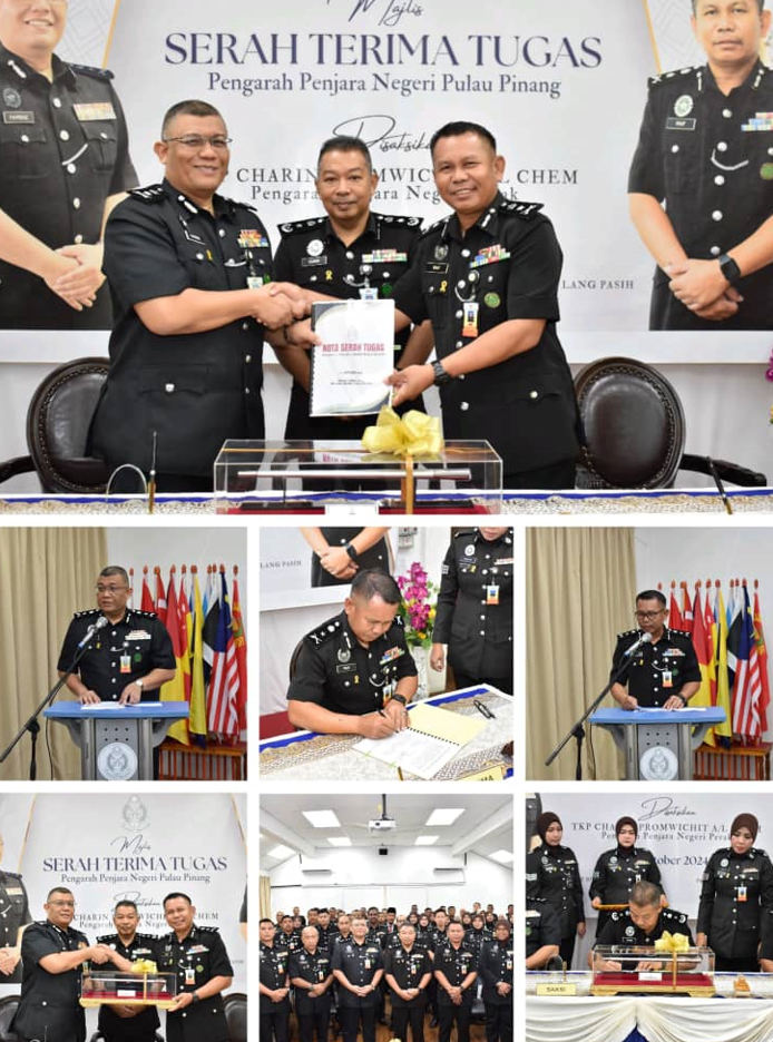 Pulau Pinang | 21 Oktober 2024 – Bertempat di Dewan Pejabat Pengarah Penjara Negeri Pulau Pinang telah berlangsung Majlis Serah dan Terima Tugas Pengarah Penjara Negeri Pulau Pinang diantara YDH TKP Fayrouz bin Ahmad Zawawi kepada YDH PKK Abd Rauf bin Lang Pasih. Majlis Serah & Terima Tugas ini telah yang telah disaksikan oleh YDH TKP Charin Promwichit a/l Chem, Pengarah Penjara Negeri Perak selaku wakil Ibu Pejabat Penjara Malaysia.